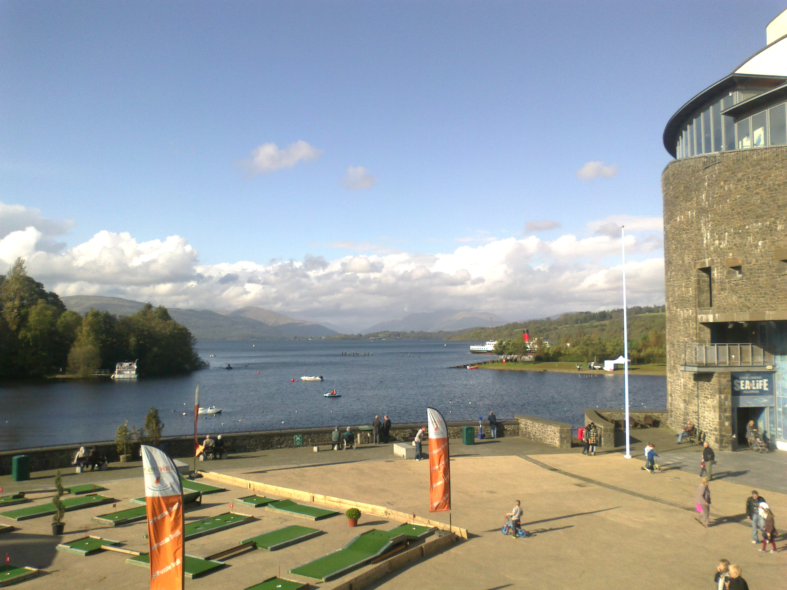 On Saturday, Irene and I decided to make an impromptu trip to Loch Lomond Shores. It’s an easy drive for me, and it was such a nice day! We’ve been so used to grey, watery skies of late; this had to be taken advantage of…