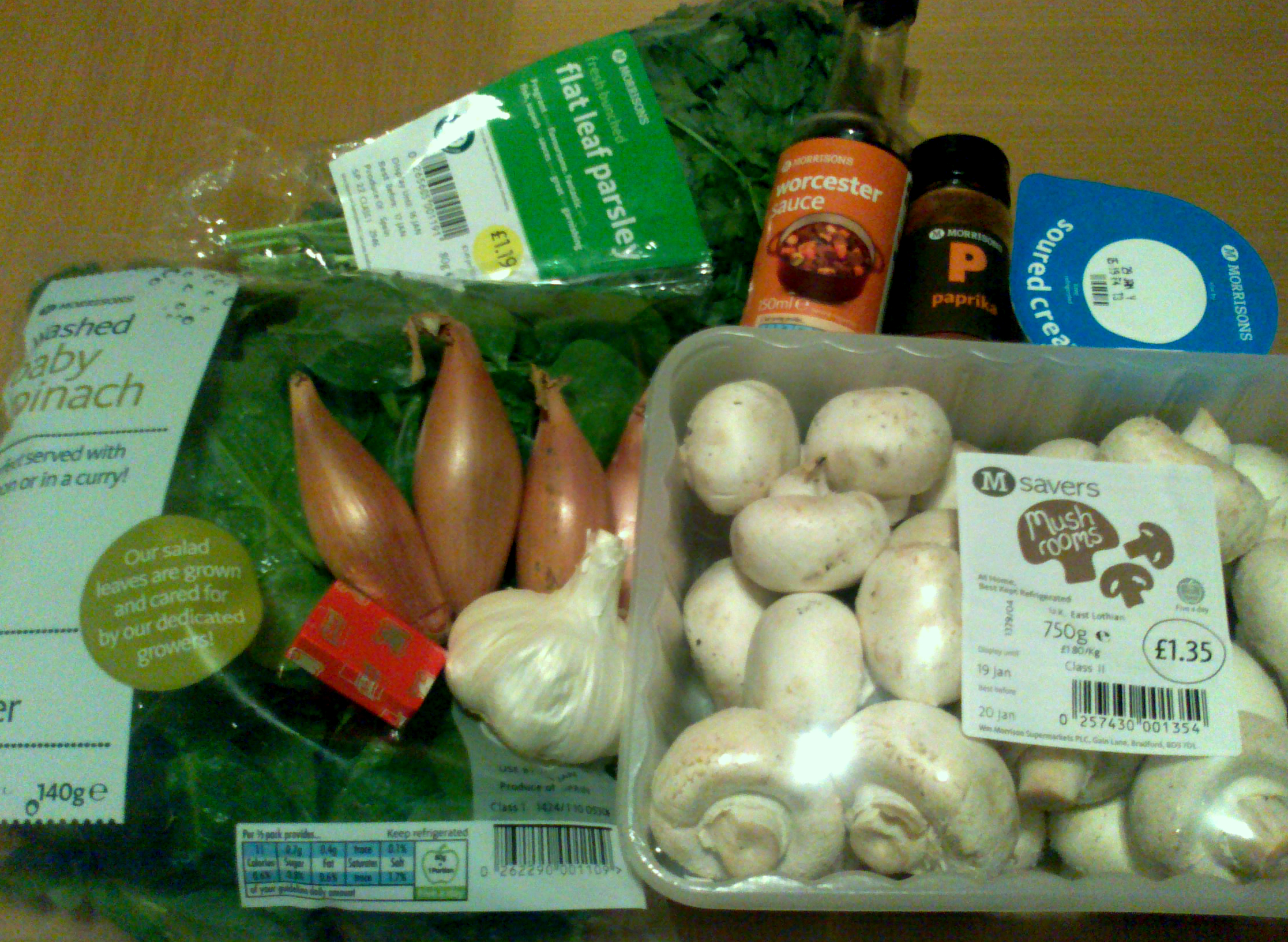 After spotting a “Spinach & Mushroom Stroganoff” ready meal when shopping for ingredients, I was inspired to add spinach to this recipe. As much as I hate ready meals and their cheap cuts of crappy meat, they do have some good ideas. As a matter of fact, I’ve got a growing list of ready meals that I’d love to replicate one day.
