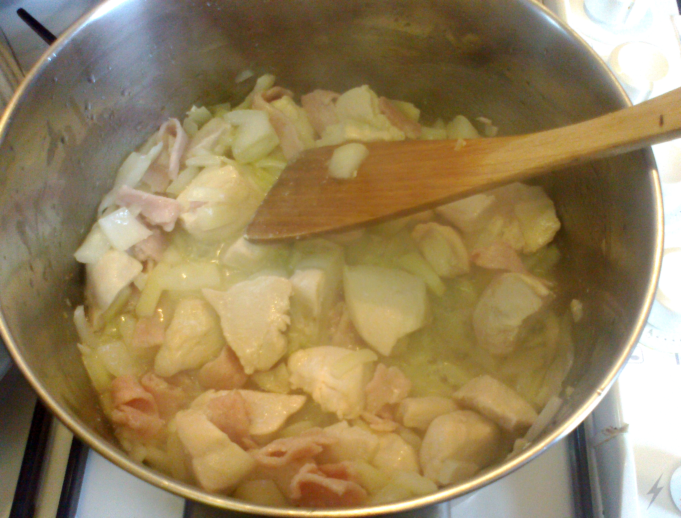 In another pot, I melted my butter, then added my flour. I stirred it vigorously, until it formed a roux.