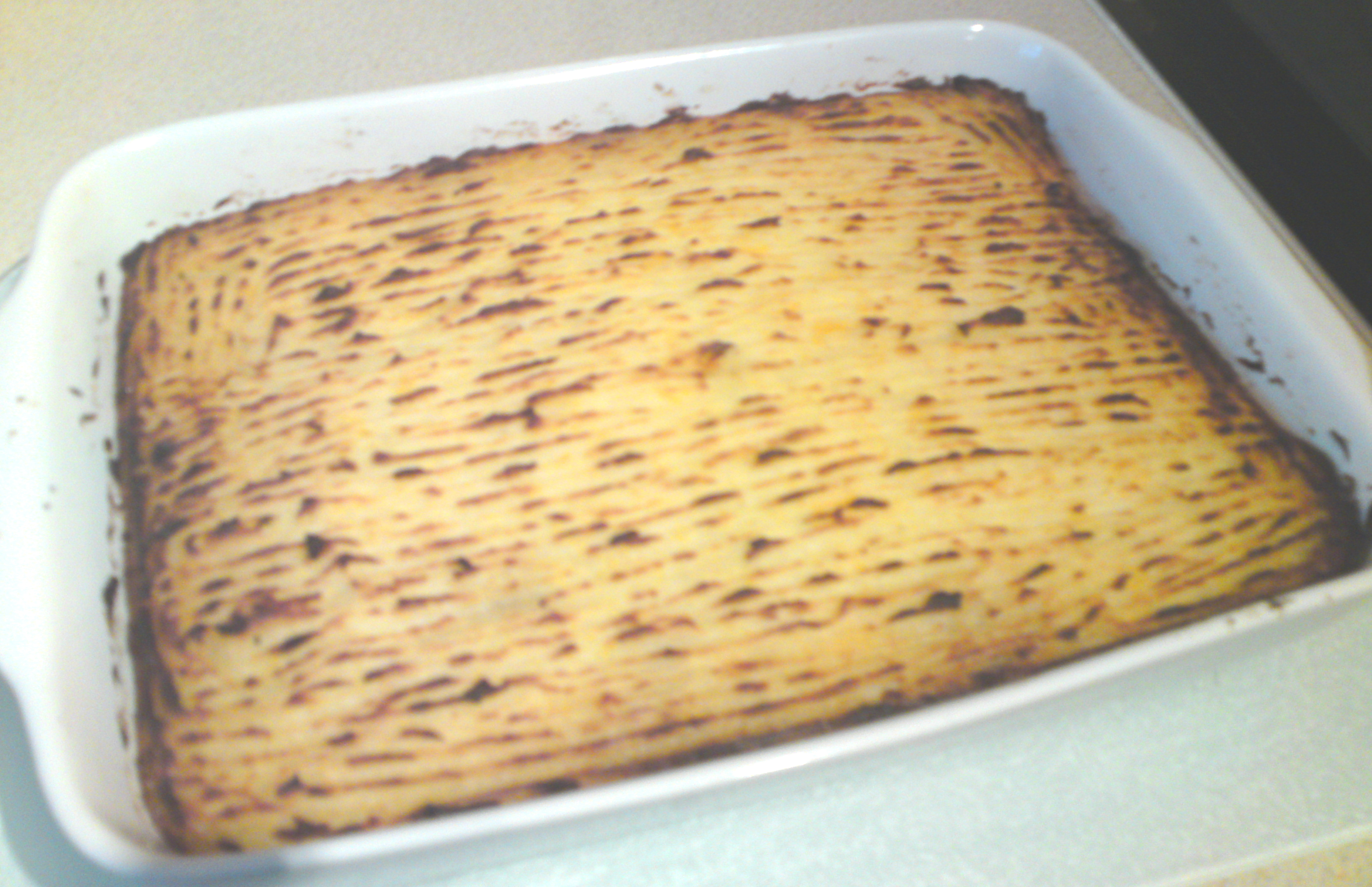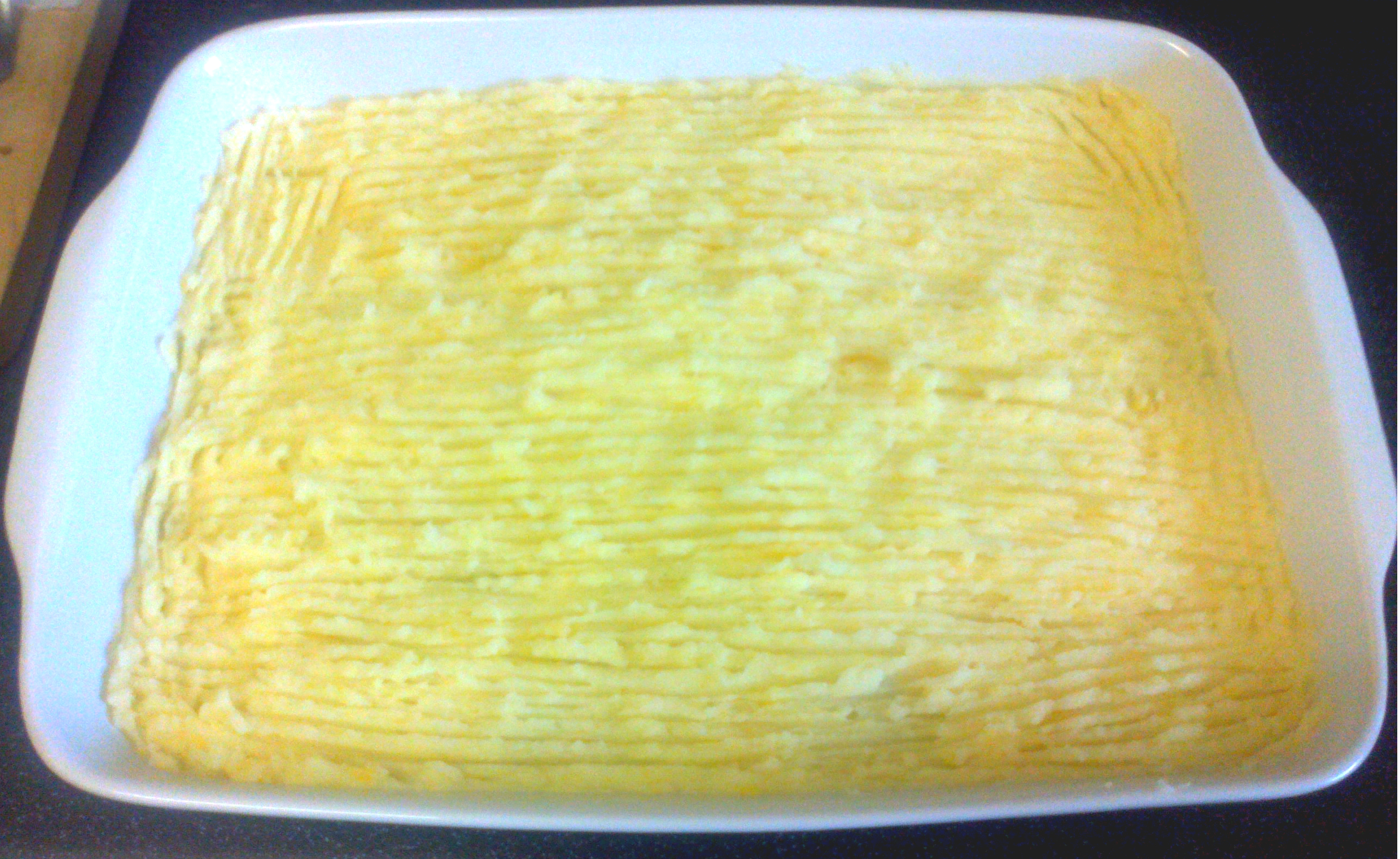 I then topped with my potato & turnip mixture, and used my fork to flatten it out and make a nice lined pattern through it.