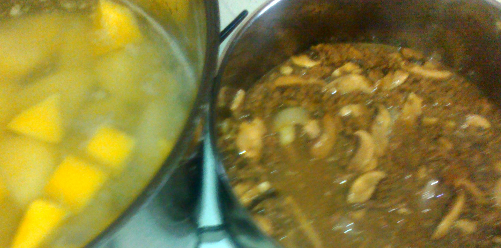 Whilst the turnip and totties were boiling, I browned my mince then added my onion. The mushrooms went in after 5 minutes.